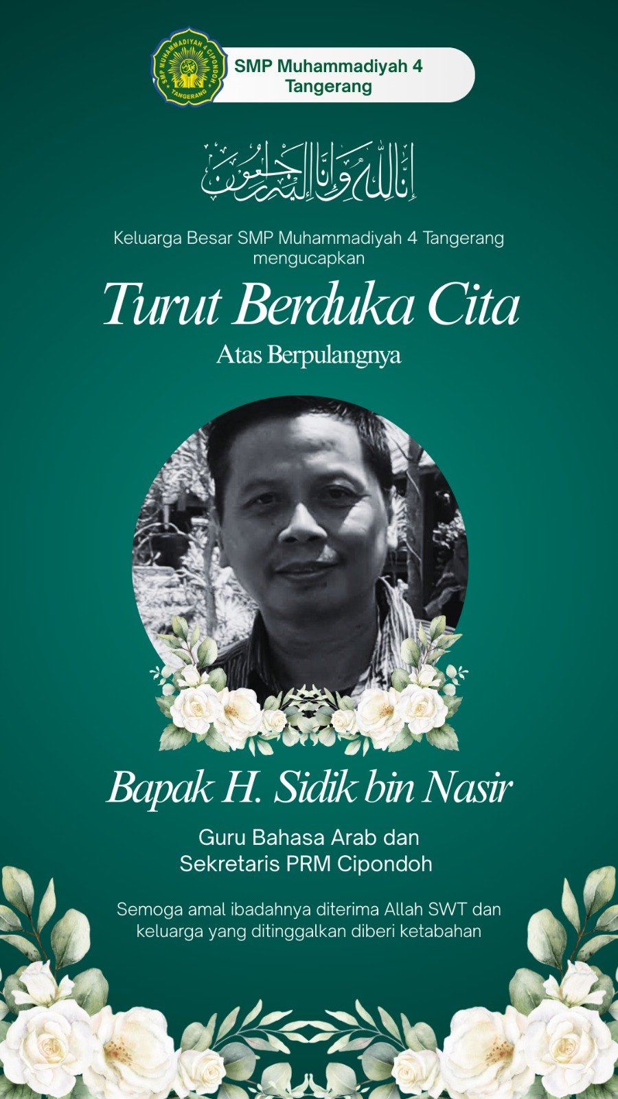"Engkaulah pelita dalam gulita, jasamu tiada tara. Selamat jalan, Bapak H.Sidk bin Nasir, doa kami menyertai langkahmu ke tempat terbaik di sisi-Nya
