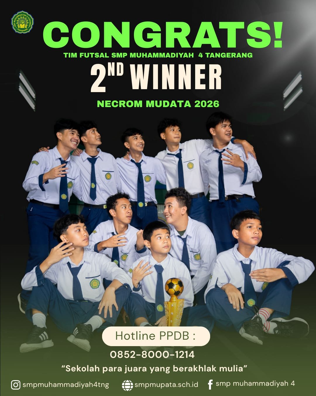 "SMP Muhammadiyah: Mencetak generasi juara yang tidak hanya unggul dalam prestasi, tetapi juga teguh dalam akhlak mulia."